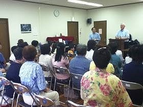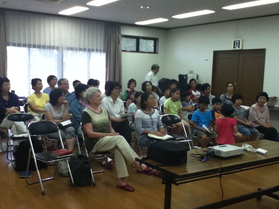 I forgot to blog about our 3PM service on Sunday at NBF. We had lots of missionary visitors this day. Larry and Alma Oline came to visit us again, John and Etsuko Martin (MUPS missionaries going home on furlough in 2 weeks) and Gerald May our current TEAM missionary who helps us twice a month at NBF as of April this year. Only 2 new VBS children came and a lot of our regular children were missing also since it is Obon season right now; families go home to see parents and grandparents before school starts next week. Even so, we had 16 kids in Sunday School!