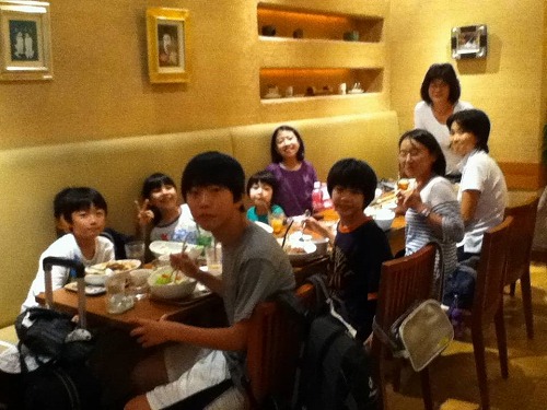 We all made it to the Yokohama City Air Terminal (YCAT) bus terminal at Yokohama station before 11:00 AM this morning, praise God! This was not such an easy task since the team was staying in several locations. We were all there on time and met Kayoko and Yukina and their mothers, the two homestay girls from Soshin who will be traveling back with the team. Saya and Yuko and their parents were there, too, so we had a big group of people sending off the team. It was joyful, exciting for the homestay girls, and a little sad with tears in many eyes of others, but we trust the Lord will bring all of us back together again someday soon. We are so very thankful for the time we had together and for the blessing we received all around from our work together for God’s glory. Here are some photos of them leaving on the bus. Afterwards, we all got together for lunch. It was great to see 4 dads at a table eating together and the moms and kids at a long table. After lunch, we parted ways. We took Nozomi to the JR train entrance and sent him on his way to his grandmother’s house after we put some ice-cream into him and my 3 girls. He called already to say he arrived safely, another praise. We did not receive any frantic telephone calls from the airport, so I presume everyone made it onto their respective flights on time with all their luggage.