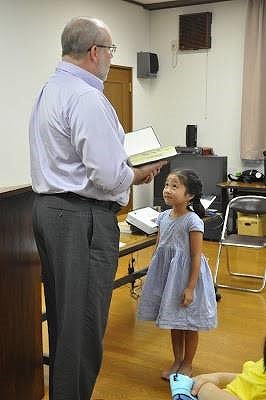 Thirdly, the children that attended the VBS touched my heart. I just want to share with you about a 1st grade girl, Kei, who listened so intently to the story of the Paralyzed Man from Mark 2. When I asked the question, “When Jesus first saw the Paralyzed Man, what did he do for him?” she raised her hand up high and quietly said, “He healed his heart by forgiving him.” It thrilled my heart, as I thought that this was a hard question for such a young group. But she had gotten it! Sugoi!