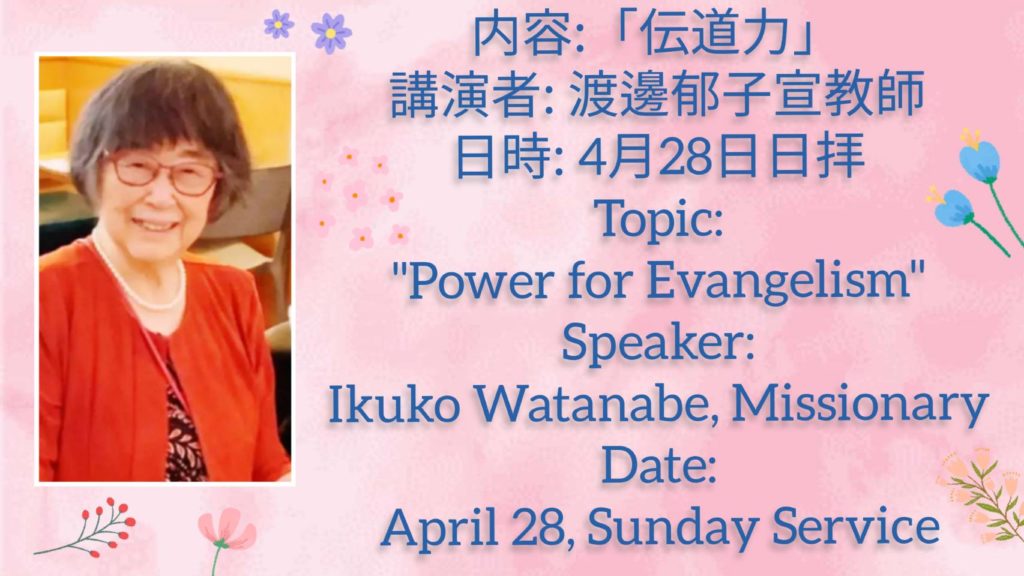 “Power for Evangelism” Speaker: Ikuko Watanabe, Missionary